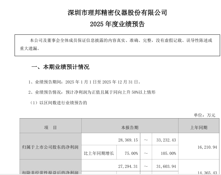 逆势上扬!理邦预计2025年净利同比增长75%-105%