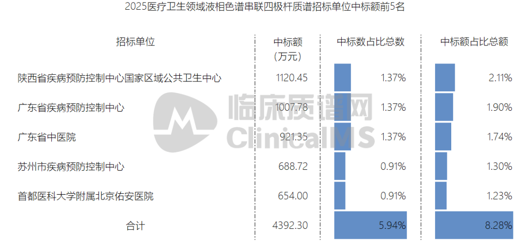 2025医疗卫生领域LC-MS/MS中标前五名的单位,