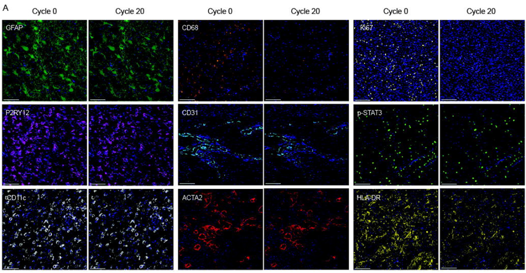 研究通过对胶质母细胞瘤组织进行20轮循环染色,验证了系统在以下方面的表现: