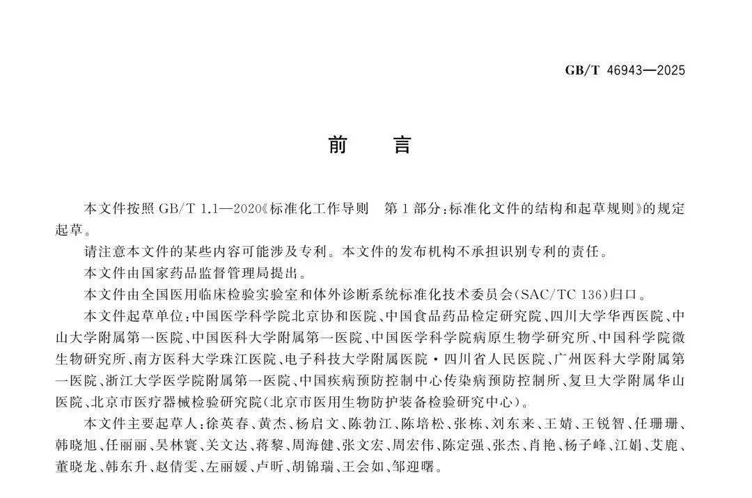 2025年12月31日,国家标准《临床实验室检测和体外诊断系统病原宏基因组高通量测序性能确认通用要求(GB/T46943—2025)》正式发布。该标准将于2027年1月1日起正式实施。