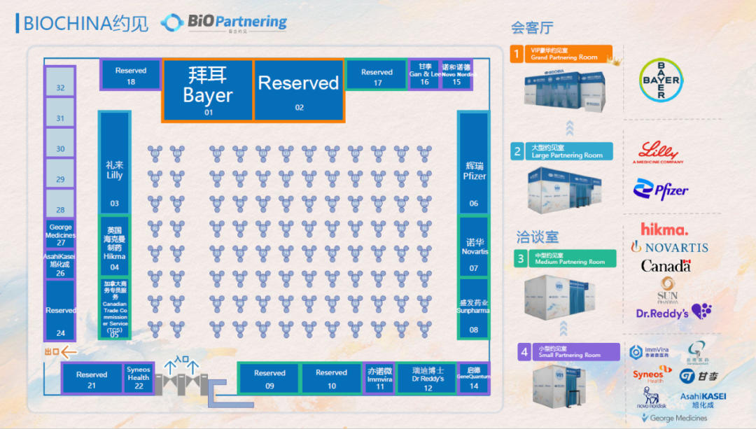 在全球产业加速融合、中国创新力量强势崛起的背景下,BIOCHINA2026搭建的“展览-大会-约见-活动”全维度体系,精准契合了MNC的战略需求。目前,拜耳、辉瑞、礼来、诺华、诺和诺德等头部MNC已率先锁定现场约见房间,近千位MNC高层、BD负责人与全球投资人、Biotech创始人一同进入约见系统,围绕XDC、多肽、AI制药、体内CAR-T等热门赛道洽谈合作。截至目前,四类约见房间即将售罄,1000+高效精准约见即将达成,成为产业合作的“催化剂”。