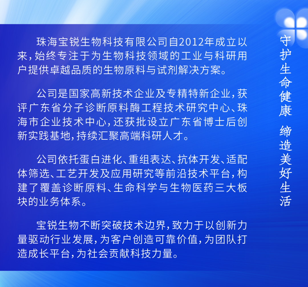 锚定这一核心需求,宝锐创新研发快速qRT-PCR扩增试剂,强势打破检测效率瓶颈。试剂最快仅需15分钟即可完成检测,在完美延续原有精准检测实力的同时,实现检测时间大幅缩减70%,硬核实力为检测时效按下“加速键”。