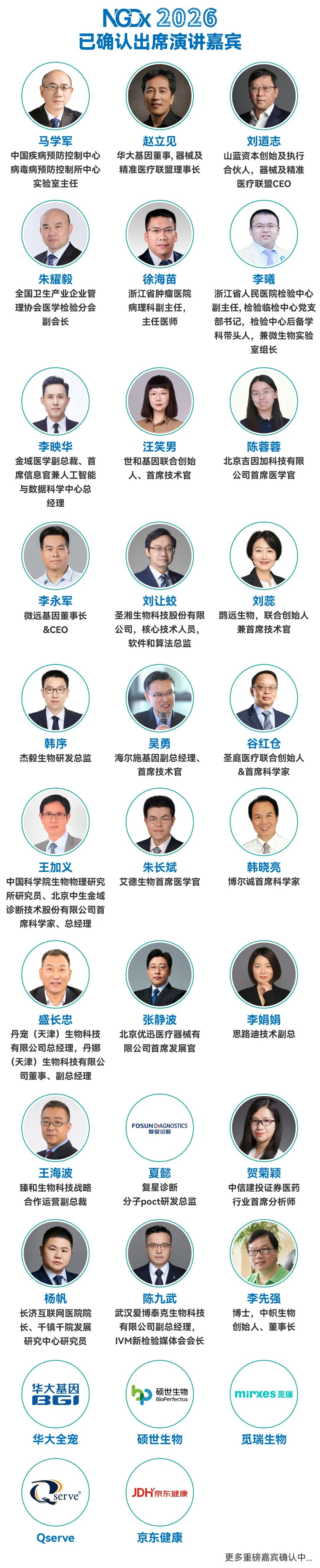 NGDx 2026重磅嘉宾 | 华大/金域/世和/吉因加/微远等30+行业领袖确认出席!