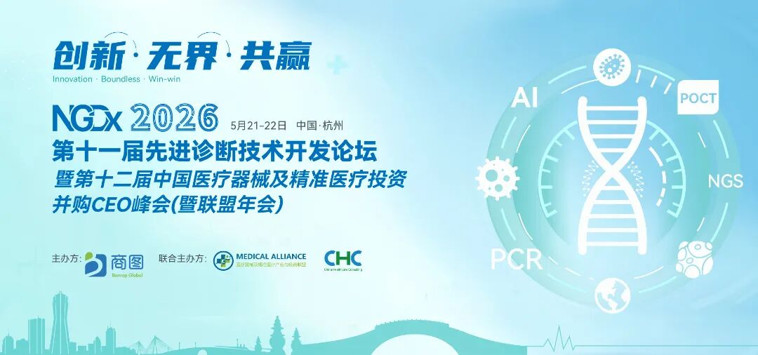 NGDx 2026第十一届先进诊断技术开发论坛暨第十二届中国医疗器械及精准医疗投资并购CEO峰会(暨联盟年会)现已定档5月21-22日杭州