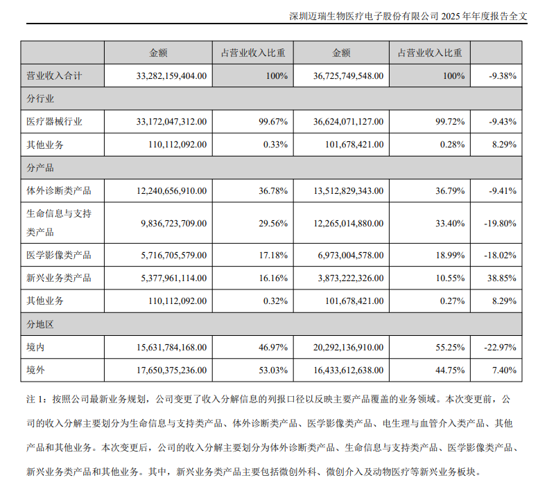 迈瑞25年财报:营收332.8亿,较上年同期下降9.38%!26年有望实现正增长