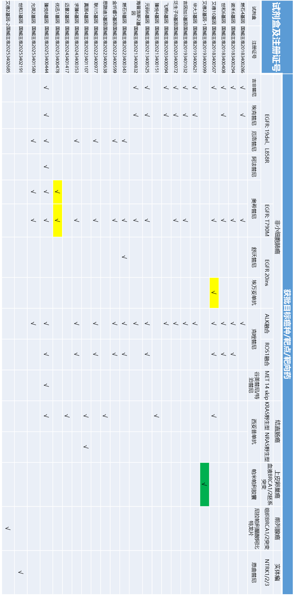 伴随诊断药物汇总表: