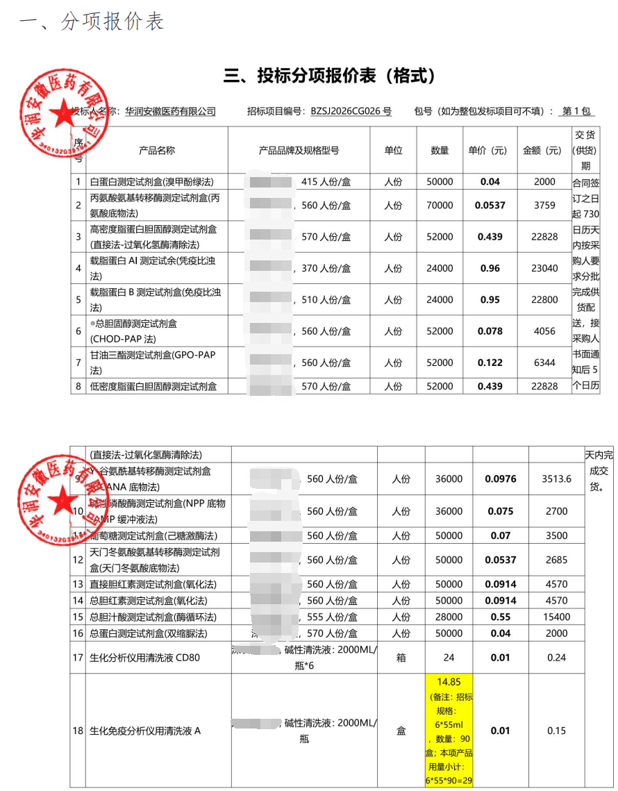 如果放在几年前,这类项目的逻辑通常是“设备低价甚至免费+试剂维持利润”,企业通过后续检测量来实现回报。但在这次标单中,可以明显看到,试剂端同样被压到了极低水平。这意味着过去依赖试剂盈利的传统模式,正在被进一步压缩甚至重构。