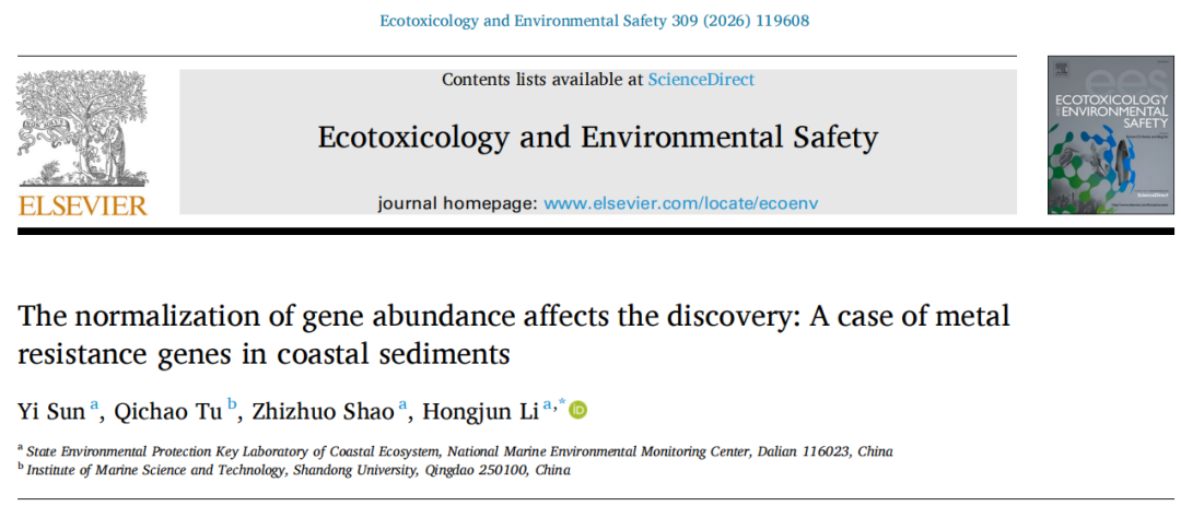 The normalization of gene abundance affects the discovery: A case of metal resistance genes in coastal sediments.Ecotoxicology and Environmental Safety,2025.