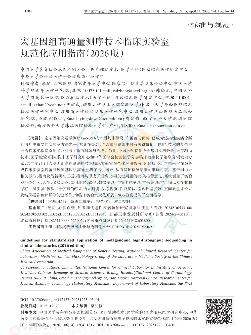 2026年4月14日,由三大权威机构联合制定的《宏基因组高通量测序技术临床实验室规范化应用指南(2026版)》(下称《指南》)正式发布。对于作为传染病防控“前沿哨所”与“决策中枢”的疾病预防控制中心(CDC)而言,这份《指南》的出台远非一份普适性的技术文件,而是一份针对CDC工作场景、直击其能力建设核心需求的规范化操作框架。它为各级疾控中心构建标准化、可靠的病原体监测与应急响应技术体系提供了明确的实施路径。