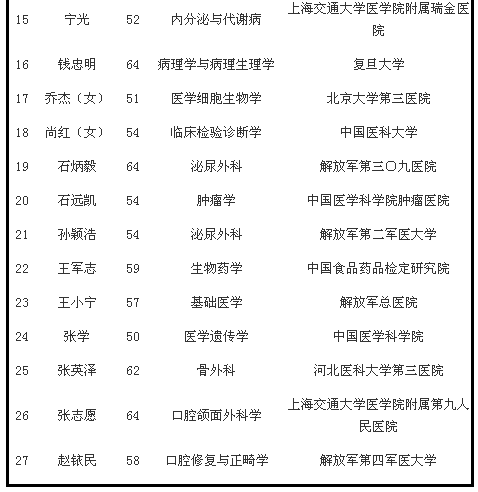 医药卫生领域第二轮中仅有27人入围,而第一轮则有67位候选人,竞争激烈,可见一斑,具体名单如下: