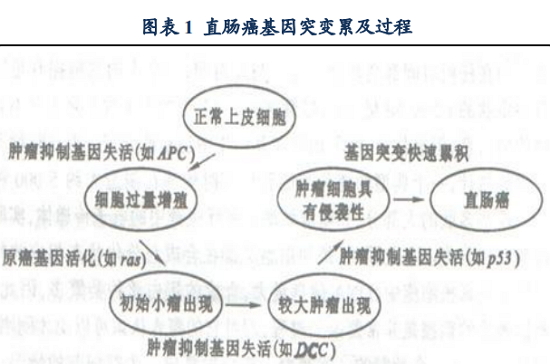图表1展示的是直肠癌产生过程相关基因突变累及的过程,直肠癌的产生是不同的抑癌基因和原癌基因突变累积的结果。 人以群分,肿瘤以基因突变分 肿瘤存在着很大的异质性,不同患者即使拥有同一类型的肿瘤,但是导至其发病的肿瘤细胞内基因突变可能相差甚远,因此肿瘤内的癌细胞也很大可能会有功能的异质性(图表 2)。