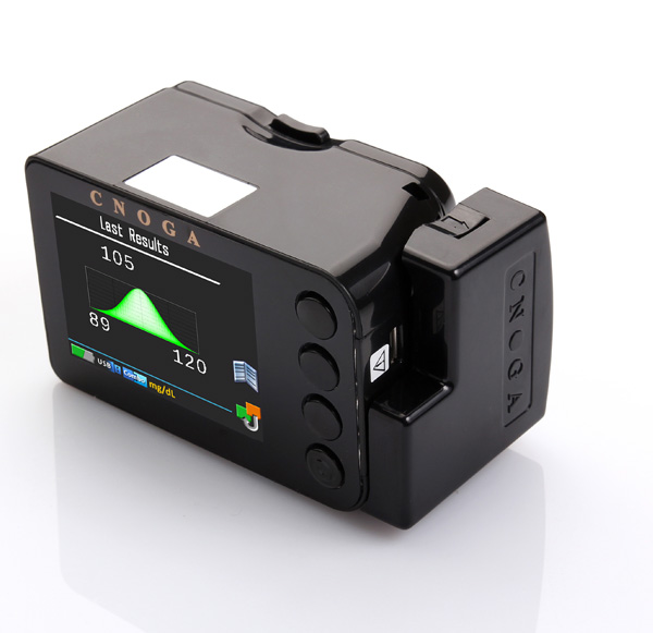这款设备的底层原理是:浅表皮肤组织液的葡萄糖浓度与血液葡萄糖浓度之间有稳定的关系。Dexcom G4 PLATINUM的检测原理跟血糖试纸类似,植入皮下的微型葡萄糖氧化酶电极传感器,与组织液中葡萄糖接触发生反应,这种化学信号通过电极转化为可监测的电信号,电信号经过特定的算法处理之后,便成了接收器上的血糖值。 这就好比,你想知道一条大河里水的硬度如何,却不想冒险直接从河里取水。但是你知道河边的地下水硬度与河水硬度是有关系的,这时你就在河边打一眼井,通过井水硬度推算出河水硬度。说到这里,这类血糖仪的问题是不是就显而易见了:井水与河水硬度之间虽然有稳定的关系,但是这种关系也会随外界条件改变而变化。 Dexcom G4 PLATINUM已获得FDA和CE的批准,可监测的血糖范围为2.22~22.2mmol/L,适用人群为2岁以上的糖尿病患者,售价大概在2000美元以上。FDA指出,使用Dexcom G4 PLATINUM血糖仪,每12小时至少要校对一次;当Dexcom G4 PLATINUM警告血糖过高或者过低时,必须使用血糖仪对指血进行检测,才可以做后续的处理;Dexcom G4 PLATINUM不能作为胰岛素用量的参考指标; Dexcom G4 PLATINUM的准确度会受到饮食和运动的影响。 学习型无创血糖仪:TensorTip CoG 以色列公司CNOGA推出了一款介于有创和无创之间的血糖仪TensorTip CoG。这款血糖仪有个很有时代感的定位:学习型的无创血糖仪。让我们一起来看看这款血糖仪是如何学习的。