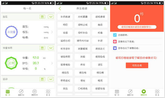 慢性病,是指具有长期积累形成疾病形态损害的疾病总称;现代病,是指由于科学高速发展带给健康人的身体及心理疾病。无节制上网、长期熬夜、大量饮酒吸烟、过度疲劳工作是现代生活非常常见的一面,加速和扩大了慢性病产生与疾病范围。如何在了解自己身体每日状况的同时做好预防疾病调理身体的工作,是开云健康想要帮助用户做的。 首登开云健康APP,先输入简略的身体信息。开云健康主要分每一天、健康计划、健康状态及小工具们(即更多)四个部分。事实上,通过开云健康的公众号还可以得到家人的健康数据,体会家人关怀服务。 每一天是每日体测数据的记录与更新;健康计划包含健康,饮食,心理三个部分,分别给出了运动饮食建议,以及心情测试、记录与放松的功能;健康状态则是对健康进行评定判断,可以通过APP内问卷对自己身体进行初步了解。小工具们则含括了开云微店、健康知识、健康闹钟等小功能。