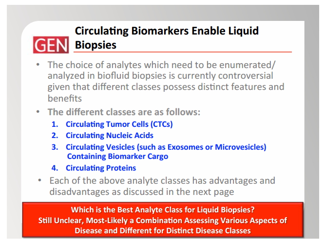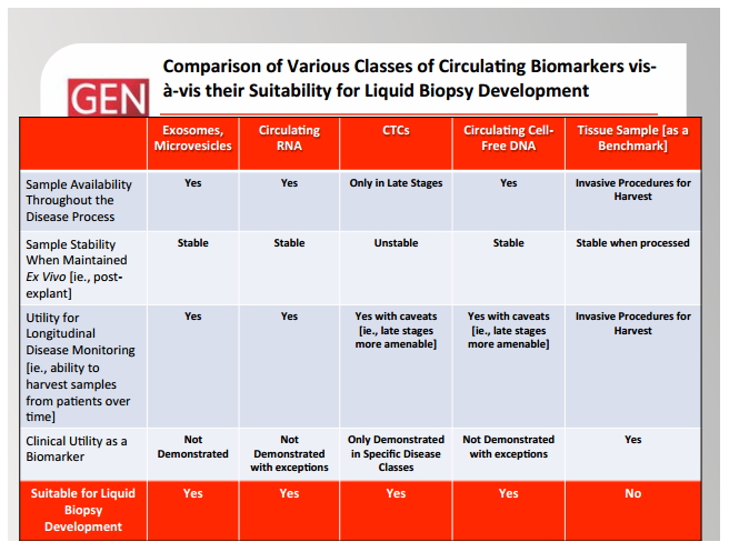比较不同种类的循环生物标志物在液体活检发展中的实用性