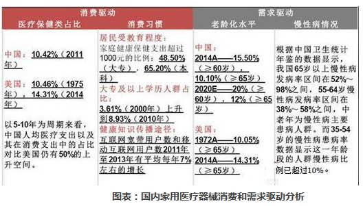从当前市场格局来看,全球医疗器械市场规模大致为全球药品市场规模的一半左右,发达国家的医疗器械行业已成为提升生物医药整体产业的重要力量,而我国这一比例大概仅为两成,未来国内的医疗器械市场仍有巨大的发展空间。虽然我国的药监部门在很长一段时间内对市场采取重药品、轻器械的监管政策,但在新医改的背景下,“以药养医”体制正在被纠正,医疗服务和医疗器械行业将迎来快速发展阶段。 由于老龄化的不断加剧,我国各项慢性病患者人数不断攀升。同时,我国目前居民消费支出以每年大于15%的速度增长,消费水平的提高、消费结构的变化以及消费意识的进步会刺激家用医疗器械渗透率的提高。从发达地区医疗体系建设的路径来看,家庭医疗、康复、预防以成为医疗体系中的重要一环,我国医疗体系目前正处于第二阶段向第三阶段的过渡时期,未来家庭预防、医疗和康复将成为主流,中国家用医疗器械行业将得到很大发展。 对此,前瞻王思明研究员对家用医疗器械市场进行了比较系统的分析。 为何是家用医疗器械?229亿美元市场,GAGR=6.7%