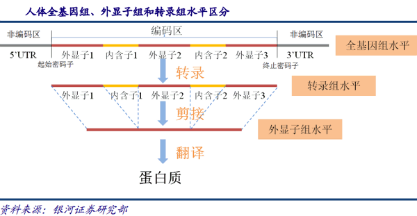 2、个体间基因组0.5%的差异可被基因测序捕捉 人体基因组由 30 亿对碱基组成,不同人之间基因组的差别只有千分之五。 正是这不到 1%的差别与外部环境共同决定着人体表型,如高矮胖瘦、酒量、乳糖耐受以及疾病等。基因测序是通过采集血液、体液或细胞,使用测序仪器获取被检测者的 DNA 序列,然后利用生物信息学方法将该基因信息与已知的基因突变数据库进行比对,并分析其中的异常突变信息,进而诊断疾病,甚至用于患病风险的预测。 人体基因组测序内容主要包括靶向重测序、外显子测序、转录组测序和全基因组测序。 通过与正常序列的比对,发现异常突变。异常突变信息按发生突变的碱基数量分为 3 类: (1)单个碱基的突变:单核苷酸多态性(SNP), (2)20bp 以下碱基的变异:插入-缺失(Indel), (3)20bp 以上碱基变异:插入(Insertion)、删除(Deletion)、拷贝数变异(CNV)以及基因组结构变异(SV)等。