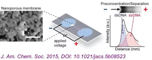 ![]() DNA分析对于许多疾病的诊断和监控十分重要,最常见最可信的DNA测试方法是聚合酶链式反应(Polymerase Chain Reaction,PCR),它特异性强、灵敏度高、操作简便省时,但也还是需要在实验室中使用专门设备进行。如果有更方便、廉价的方法可以进行DNA分析,那么降低患者负担、提高某些疾病的早期筛查比例这些目标就更加容易实现。 最近,加拿大多伦多大学的David Sinton等人利用纸质设备,通过一个外加电场,使用离子浓差极化法(ion concentration polarization,ICP)完成对DNA的直接分析。该研究发表于《J. Am. Chem. Soc.》。 ![]() 离子浓差极化法由Sinton在去年发明(Anal. Chem., 2014, DOI:10.1021/ac502597v),可以控制带电分子在湿纸上的运动。现在,他的研究小组将这一方法用于操纵DNA的流动方向。 首先,他们在纸上打印蜡从而划分出一个储液池以及一条长而细的通道。在储液池的边缘,他们在小区域内的纸上涂覆带正电荷的Nafion聚合物。然后,将染料标记的DNA注入到储液池中。通过对纸施加电场,使带负电的DNA聚集到涂有Nafion的区域。然后切换电场的极性,DNA顺着通道向下迁移,并根据分子量和电荷的不同而分离开。再对照标准DNA的结果,就可以知道待测DNA的种类。这有些类似DNA样品的凝胶电泳,但Sinton说,这个方法更简单也更便宜,试纸仅需花费几美分。 Sinton等人随后进行了临床样本的测试。仅需十分钟,就能完成人类血清样本中乙肝病毒(HBV)DNA的预浓缩、分离、检测。而且,这一技术对HBV DNA的检测限仅为150 copies/mL,因而无需预先扩增病毒,足以用于乙型肝炎的早期诊断。该团队还利用该方法分析人类精液样品中的片段化DNA的比例,以评估精子的活力。这一方法得到结果与经典的精子染色质结构分析法(SCSA)结果一致。在所有病例中,这种纸基方法的结论与最后基于PCR的临床诊断结论都相同,临床诊断准确率达到100%。 目前,该团队正计划设计一种便携式设备,为这种纸基技术提供合适的电压,并直接观察结果。 |