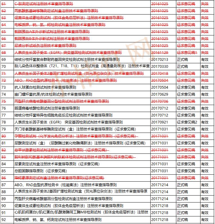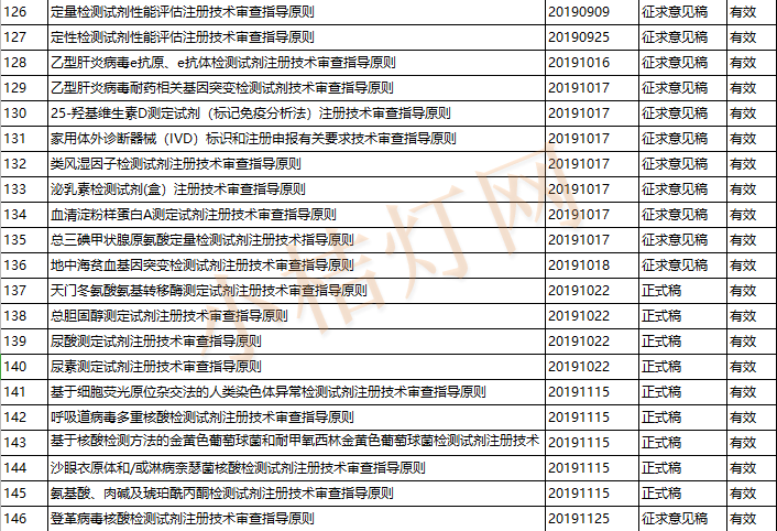 截止2019年11月29日,国家药品监督管理局医疗器械审评中心发布了173项体外诊断产品的指导原则,包含体外诊断试剂146项,体外诊断仪器27项。