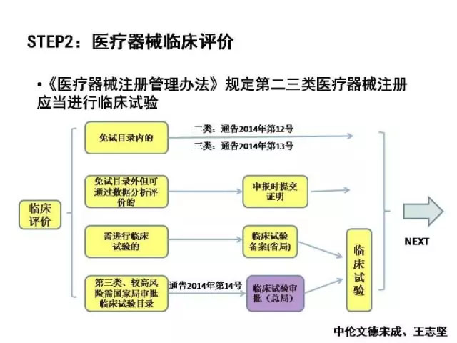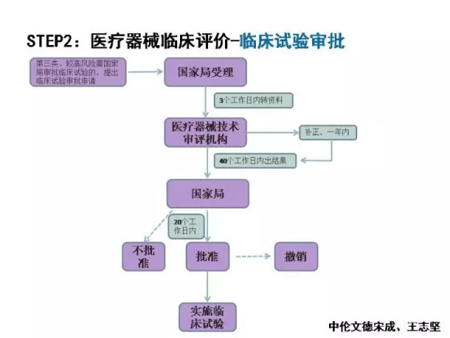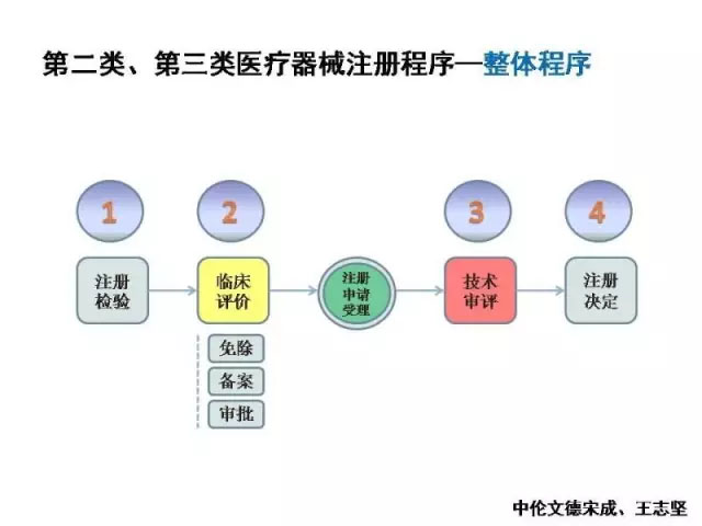 2014年《医疗器械注册管理办法》的颁布,将我国医疗器械的注册管理纳入到了规范化管理轨道中来,从而进一步保障了我国医疗器械的安全性和有效性。2016年国家食品药品监督管理总局和国家卫计委又联合颁布了《医疗器械临床试验质量管理规范》及配套文件,进一步加强对医疗器械临床试验的监督管理。为了广大读者能更好的理解整个注册程序,以下通过几张图片来简单阐述:
