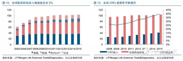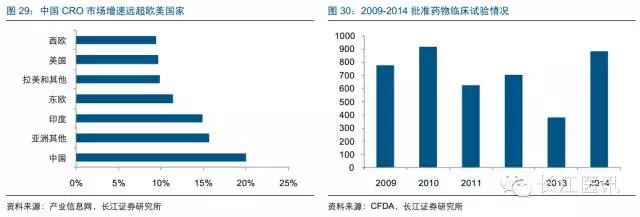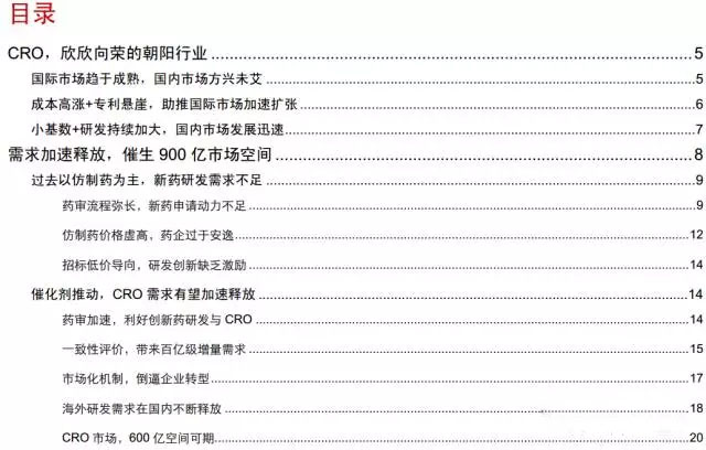 ![]() ![]() ![]() ![]() CRO,欣欣向荣的朝阳行业 国际市场趋于成熟,国内市场方兴未艾 CRO行业主要依靠承接大型制药企业的新药研发外包合同实现盈利,服务范围基本覆盖了新药研究与开发的各个阶段和领域,CRO企业主要被分为临床前与临床CRO两种类别。 ![]() 2006年全球CRO市场总额196亿美元,2013年552亿美元,7年复合增长率15.94%,预计2015年全球市场超过700亿美元。中国CRO行业处于起步的阶段,增长迅速。2013年国内CRO市场总额220亿元,7年复合增长率32.93%,远高于国际市场同期增速。预计2015年中国CRO市场总额将超过350亿元。 ![]() 但目前国内CRO市场基数小,中国仅占全球市场2%份额。目前全球CRO市场为美国和欧洲主导,最大的50家CRO企业大部分是美国和欧洲公司。前六位公司昆泰、科文斯、PPD、爱科恩(ICON)、Ominicare和MDS Pharma占据全球CRO市场接近一半的份额。 ![]() 成本高涨+专利悬崖,助推国际市场加速扩张 药物研究和开发本身是一个高技术,高风险,高投入与长周期的过程,自上世纪70年代以来,药品研发成本不断攀升,加上研发成功率下降,给药企带来的经营压力。同时,药企还要面对全球专利悬崖带来的利润损失,促使专业的CRO更多地参与到了新药研发流程中的部分环节。 ![]() ![]() CRO 凭借其高度专业化的研究网络和新药注册团队,可以使新药研发的资金投入和潜在风险在CRO行业的整条产业链上得到分散,降低新药研发成本,并提高上市速度。研发外包往往能缩短30%的研发时间,以年销售额超过20亿美元的重大抗癌药为例,早上市一个月,就能新增2亿美元的潜在收入(不包括药企的人力成本和设备费用)。 ![]() 随着制药企业越来越倚重CRO作为其研发的外部资源,在全球药企研发支出保持稳定增速的背景下,CRO业务渗透率不断提升,从2008年27%增长至2013年34%。预计未来仍将保持增长趋势,在2015年达到40%,CRO市场扩张趋势明显。 ![]() 小基数+研发持续加大,国内市场发展迅速 医药研发投入直接关系到CRO市场规模。我国医药研发投入增幅较快,医药研发市场潜力巨大。国内医药研发投入由2007 年的20亿美元增加到2012 年的84亿美元,5年复合增长率32.8%。相比欧美发达国家,我国医药研发销售占比不足2%,相比欧美15%以上、印度6-12%,具有很大的增长空间。 ![]() 国家政策鼓励医药行业与服务外包行业的发展,将进一步助推CRO市场在国内的扩张。 ![]() 需求加速释放,催生600亿市场空间 CRO 行业的上游行业是具备资格的药物评价实验室与临床试验机构,这些相关医疗机构的发展与专业人才的储备,是CRO行业发展的基础。下游主要为制药企业、药品经营企业、医疗器械企业、医疗保健品企业和其他研究机构,这些医药企业的研发需求决定了研发外包服务的市场大小,CRO行业从诞生到之后扩张都是由需求端主导的。 ![]() 近年来,国家研发投入的高速增长与国内医药市场的扩张,将会为CRO行业带来巨大机遇。我们相信,随着国家医药政策的完善与药品研发的需求逐步释放,CRO行业崛起在即。 过去以仿制药为主,新药研发需求不足 国内仿制药占比高达90%,创新药研发少,造成以下局面: 1) 对CRO尤其是临床前研究的需求低; 2)多数CRO在做仿制药的外包,技术含量与利润水平非常低。 国内新药研发以仿制为主,一些高类别的新药也多数是在国外研究的基础上进行一些改进而来,其有效性和安全性特征基本已经在国外研究中得到了验证。因而多数制药企业在临床前研究环节投入的资金较低,临床前CRO机构所从事的研究评价活动在技术要求和质量管理水平等方面也相应较低。因此,国外知名制药企业往往较少将药物临床前研究业务委托给国内一般的临床前CRO企业。 专利药相比仿制药,研发成功率更低、时间更长、成本更高,对CRO的需求更大,专业性要求更高。同时,业务结构中创新药临床研究服务占比较高的临床试验CRO企业,其利润水平要好于仿制药临床研究服务为主的临床CRO公司。 ![]() 我们预计,药品研发需求,尤其是对新药研发需求的释放将会对整个CRO带来技术上与收入上的巨大提升。 药审流程弥长,新药申请动力不足 药品审评审批制度主要关系到企业创新药物研发的动力和积极性。在医药研发的过程中,涉及药品审评审批的环节有两个,分别是临床研究申请(Investigational New Drug, IND)及新药申请(New Drug Application, NDA)环节。 ![]() ![]() 根据美国审批流程,IND审批时间约为30天(1个月),NDA审批时间约为180天(6个月)。美国在内的许多国家对临床研究申请(IND)实行较为宽松的审批制度——备案制,例如美国食品药品监督管理局(FDA)收到之日起 30个天内,申报者如未收到 FDA 异议通知,即可开展新药试验。而我国新药IND的审批时间平均达6 -9个月,远超其他国家。 ![]() 按照国内新药申请流程,新药临床申请者从递交申报资料到获得临床批件的最顺利时间应在190 天左右,而目前普遍会拖延至540天(18个月)左右,有些甚至拖延至两年。国内药品审批时间远远大于美国等发达国家;与同等水平发展中国家相比,中国的临床审批时间平均比印度长7个月,使得跨国企业在中国进行临床的机会成本大大提高。 ![]() 与国际上发达国家相比,中国审批效率低下的主要原因包括:(1)审批权在国家局面,过于集中;(2)审批力量不足;(3)审批流程繁琐。 同时,中国的审批过程存在质量不高的问题。 ![]() ![]() 中国的药品专利期一般是20年。一般新药申