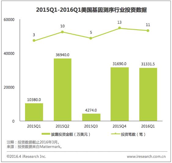 中国基因测序行业远未爆发 艾瑞整理公开数据显示,互联网医疗行业在2015年共获得141笔投资,披露的投资金额为15.1万美元,而2015年中国基因测序行业仅获得16笔投资,披露的投资金额仅0.7万美元,其投资笔数约为互联网医疗行业的十分之一,披露投资金额约为互联网医疗行业的二十分之一。 无论从投资笔数还是披露投资金额来看,现阶段基因测序行业都远未及互联网医疗行业火热。艾瑞分析认为,现阶段中国基因测序行业未普遍受到资本市场热捧的主要原因有:1)基因测序成本仍较其他替代检测高,以产前检查为例,无创产前基因监测的成本在2000-3000元,而羊水穿刺成本则在700元左右;2)应用场景还不够丰富,目前基因测序技术的应用方向主要是科研和临床医疗两个方向,科研面向B端,临床医疗面向C端。C端的应用主要集中在生殖健康和肿瘤诊断和治疗上,C端应用方向仍有非常大的空间。