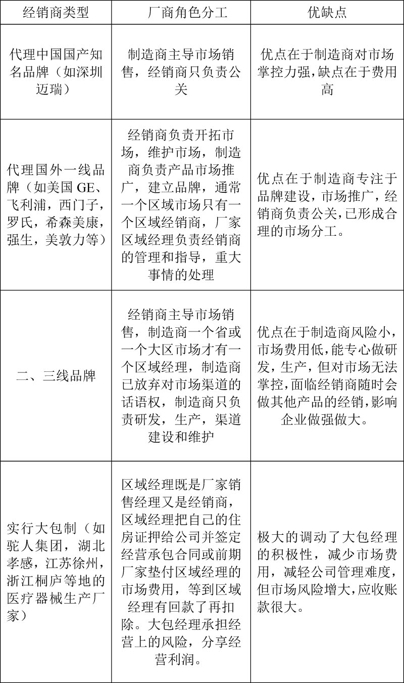 在现代商战中,随着竞争加剧,品牌推广费用、终端营销费用不断飞涨,制造商加强企业内部合规管理等因素的影响,导至90%以上的医疗器械企业把市场营销工作转移给经销商操作,厂家提供品牌支持。厂家更把多的精力投入到产品研发,品牌策划,市场推广上,形成营销环节的合理分工。但是,有些经销商不配合厂家的工作,向厂家一味的要政策,要费用,甚至冲货,令制造商头痛不已。如何才能让经销商按照厂家的要求运作市场产生1+1>2的效果呢?笔者王强结合二十多年的管理经销商的经验,只要厂家按以下伏虎九式一一施展出来,经销商不仅非常听话,而且离不开你。 第一式 帮助经销商做市场战略规划 大多数经销商由于学历不高,没有受过严格专业销售培训,再加上由于其生存方式的特点(经销别人的产品,并有一定的经销期限),往往很少或不知道对自己代理的品牌进行战略规划,所以在操作市场上,大多不考虑长期利益,只考虑眼前利益。如果按照这个思维去运作市场的话,对于品牌而言是致命的。 当地整个市场是由多种渠道有机结合而成的,有对整个市场起决定性作用,但需要很长时间,需要花很大精力,前期甚至要略亏的战略渠道(三甲医院);有费用低的辅助渠道(民营医院,计生站,中心血站,疾控中心,检验检疫局,政府采购),还有销量不大,利润较高的赢利渠道(二甲医院);还有特通渠道(民政系统,残联系统),要想把整个市场做起来,就必须做全分销,全覆盖。少做一个渠道,都不可能把整个市场运作起来,更重要的是前期,中期,后期以哪个渠道为主,以哪个渠道为辅,市场推广如何做?费用如何投入?都是需要仔细研究的,经销商在选择渠道时,肯定是哪个渠道赚钱就做哪个渠道,这样市场操作肯定是有问题的! 所以,在选择经销商的同时,双方要根据当地市场的市场容量,市场环境,当地目标患者的发病率,当地客户的习惯和兴趣爱好,竞争状况,厂家的营销策略以及经销商在当地所处的市场地位,实力,资源等情况作出详细的市场调查,拟订市场发展战略规划。待双方达成共识后,才开始运作市场。关键是如何让经销商接受我们的战略?经销商也是非常明智的,只要我们能切中要害,分清利弊,对将来的市场发展趋势有很好的预测,有其他市场成功的案例,并能说出如果经销商不这样做会给他带来的损失时,经销商是不可能不接受的。因为经销商是想赚钱的,你指出一条能长期让他赚钱的路,他难道不走吗?经销商认同这个战略,经销商才会成为与我们同舟共济的战略合作伙伴,才能保证厂家稳固的市场地位。 也有国产品牌如中国国产DR销量最大的深圳安健公司,深圳安健公司只做基层医院和民营医院,这时我们也要对市场进行详细市场调查,帮助经销商做合理的市场战略规划。 第二式 全程助销,后顾无忧,让经销商对厂家产生依赖 市场发展战略制订好以后,经销商虽然接受了,但他内心还是有些半信半疑,不敢完全按此战略进行,这时制造商需要跟进,与经销商一起制定出基于以上发展战略的市场拓展方案,并成立品牌运作小组,成员由制造商和经销商的销售人员共同组成,制造商的人员主导产品推广,让使用科室主任认同,经销商的人员做好市场维护和公关工作,并要求经销商资金支持活动,同时制造商也应支持经销商前期启动市场所需的市场推广费用。 在市场启动期间,以制造商的名义运作市场比以经销商名义运作效果要好得多,况且这样有以下两方面的好处。其一、让经销商深切感受到制造商的支持力度;市场切入比较容易,医院接受程度较高。其二、由于市场推广是由制造商进行的,消弱了经销商对医院的控制力。于是,就让经销商对制造商有了很大的依赖。其三、随着一票制,二票制在医疗器械行业的实施,市场格局发生很大的变化,中小型的经销商面临转型,否则被淘汰出局。