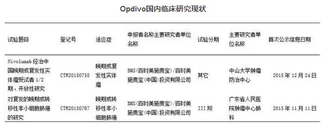 Opdivo国内临床研究现状