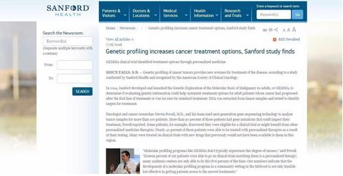 根据一项由美国临床肿瘤学会认可,由桑福德医疗系统(Sanford Health)开展的研究,肿瘤的基因图谱分析为疾病治疗提供了新的途径。