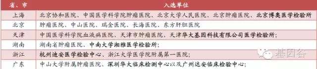 表 :第一批肿瘤诊断与治疗项目高通量基因测序技术临床试点单位名单