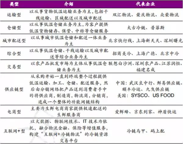 我国自有冷藏车保有量分布区域 4、商业模式 国内冷链服务提供商主要有8种商业模式,分别是运输型、仓储型、城市配送性、综合型、交易型、供应链型、电商型和物联网+型。而目前该市场的竞争者可以分为四大类,分别为由传统物流企业转型、生产商自建自营的冷链部门、专业冷链服务商、国外冷链巨头联手国内企业设立的合资企业。