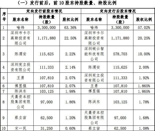 继宣布收购以色列开发图像理解与人工智能的公司——Imagu后,9月22日,碳云智能又对外披露已完成对新三板公司般若系统(835739)的3000万元战略投资。 根据般若系统发布的2016半年报,该公司于2016年5月17日与碳云智能签订了《股份认购协议》。根据该协议,般若系统向碳云智能定向发行不超过 578,703 股人民币普通股股票,募集资金额度不超过 29,999,963.52 元人民币,发行价格每股 51.84 元。 般若系统在8月16日发布的《2016年第二次股票发行情况报告书 》则显示,因占股10%,碳云智能已成为般若系统的第三大股东。