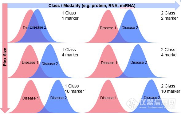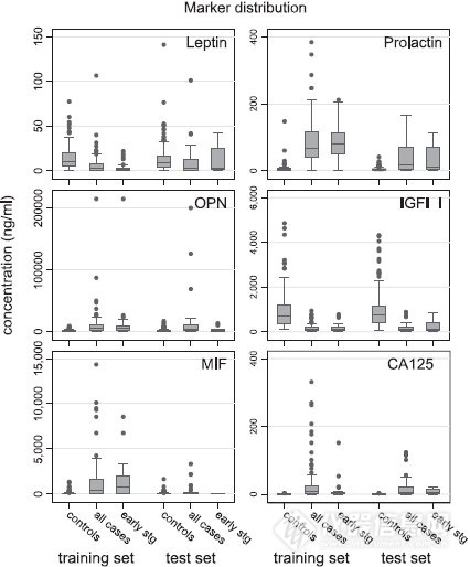 目前,已有几千篇文献报道利用xMAP技术进行肿瘤标志物联合检测以提高肿瘤检查准确性和特异性。例如,Irene等人采用非侵入性方法(血清)对卵巢癌6个标志物进行检测,发现6个标志物联合诊断比原来的单个CA-125检测准确率明显提升(95.3% vs 72%),从而能够展开卵巢癌的早期治疗(图2)。
