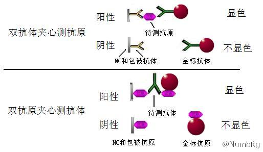 (一)基本概念 为了方便新人与老司机交流,需要掌握一些基本名词和概念,以便准确的表述问题。这些知识不考试,写作时间也有限,关键还没有稿费,所以随便写写,没有咬文嚼字,如果意思表达错了请指正,形式上就不用对着教科书抠字眼了,谢谢。 1.抗原、抗体,和二抗: 抗原(半抗原):能够诱导产生抗体(免疫原性)并且和这个抗体特异性结合(抗原性)的物质,一般称为大分子物质。半抗原是只有抗原性,而不能诱导产生抗体的物质,称小分子物质,通常只有一个抗原决定簇。一般低于10KD免疫原性就很差了,但免疫原性与分子量没有绝对关系,还要看结构的。 抗体:能够与抗原特异性结合的免疫球蛋白。单抗和多抗,单抗是针对一个抗原决定簇的,单一类型的抗体;多抗是针对同一免疫原(一个或多个抗原决定簇)的不同单抗的混合体。种类上又分IgG、IgM等,IgG又分不同亚型,1、2a、2b等。结构上是Y型,上面两个相同的可变区Fab与抗原特异性反应,恒定区Fc具有种属特异性。 二抗:以抗体(通常只是Fc片段)免疫另一物种产生的一种抗体,有多抗比如羊抗鼠IgG(Goat anti mouse IgG),是用鼠IgG的Fc片段免疫山羊,获得的一种多抗,不管你小鼠单抗是针对什么抗原的IgG(主要是Fab差异),其Fc基本是相同的,所以都能被羊抗鼠IgG结合,常用做C线,但是不同亚型的IgG的Fc段结构有差异(分型的基础),与二抗的结合效果可能存在区别。也有单抗如鼠抗人IgG、鼠抗人IgM,最常用的间接法(捕获法)的原料。 虽然我们常用羊抗鼠IgG做C线,但是请注意C线≠二抗,C线用什么就说什么最省事,不要把C线如何如何,说成二抗如何如何,这样会让大家误解你的检测模式设计。 2.检测模式:(如图,手机上看不到,试试电脑版浏览,如果还看不到就得留言联系管理员了) 1)夹心法: ![]() 2)间接法(固相包被抗原,标记抗人抗体)和捕获法(固相包被抗人抗体,标记抗原),其实我觉得没必要刻意纠结这两个名词,反正交流的时候,都免不了被问标记的什么,包被的什么。这两种方式相当于一个另类的夹心法,调整起来跟夹心法基本想同。 ![]() 3)竞争法:一切与夹心法反着来。如下图,人为偏向标记抗体和待测抗原先反应,即正常的不公平竞争模式,有利于消线;还有标记抗原,NC包被抗体的,这样标记抗原和待测抗原在同一时间与T线抗体竞争结合,是一种公平竞争,灵敏度比前者要差很多。 ![]() 4)标记抗原还有个搭桥法: 在制作重组抗原的时候,人为嵌入一段便签序列,这样做一方面有利于抗原纯化;另一方面可以简化并且高效标记。因为结构原因,抗原标记相比抗体标记,一是容易引起交联死金,不好顺利标记;二是容易掩盖活性位点,不能有效标记。这时候标签就能发挥很大作用了,比如你抗原有GST标签,你可以先在金子上标记抗GST抗体,然后再加进去抗原,形成“金--抗GST抗体--(GST标签)抗原”这种复合物,相当稳定,而且抗原远离金子不会形成空间位阻,并且你标记一个GST抗体,所有含GST标签的抗原都可以拿来搭桥。 3.空间位阻: 就是胶体金颗粒在空间上阻挡了抗体和抗原的接触和反应,说几个数据会比较形象:金子常用大小为40nm,IgG抗体一般分子量在160KDa左右,长度约8nm,并且因为抗体的结构原因,一般是Fc结合胶体金,Fab向外伸展,反应部位充分暴露,不存在空间位阻的问题。但是标记重组抗原就不同了,在金标上常用的重组抗原一般15-40Kd,换算过来相当于0.8-2nm左右,并且标记结合部位很随机,不像抗体那样天然的远离反应位点,所以标记时有两种情况会导至没有活性,一是直接标记在反应位点上,;二是标记位置非常靠近反应位点,虽然没有掩盖,但是因为金子的空间阻挡,抗体还是没法跟他反应。 ![]() 4.一些文献常用词: 金标试纸条一般是两条线,质控线(C线,Control line),检测线(T线,Test line,这里的抗体一般称呼是coating / capture antibody),金结合垫(conjugate pad,这里的抗体一般叫labeling / detection antibody)。 ![]() 5.蛋白等电点PI: 蛋白质(氨基酸)是一种两性电解质,既可以从羧基释放H+,从而带负电,也可以让氨基结合H+而带正电,到底带什么电荷取决于所处Ph环境,Ph等于等电点时整体电荷为0(等电点时单个氨基酸理论上有不带电荷的可能,但是由不同氨基酸组成的蛋白质,应该是带电荷的,只是所带正负电荷数相等),大于等电点时整体带负电(负电荷总数多于正电荷),小于等电点时整体带正电(正电荷总数多于负电荷)。 也就是说在任何Ph环境下,蛋白质都同时带正电荷和负电荷,电荷在标记过程中起着很重要的作用,一是其本身贡献结合作用力,另一个重要的影响是,标记的前提是蛋白和金在溶液中接触,而电荷直接影响两者的接触,也就是影响标记效率。还有一个隐藏的属性是,加入蛋白本身对标记Ph有一定的影响(释放或结合H+),而且其保存液也是一种缓冲液,这个隐藏属性对标记环境有一定的影响,尤其是放大标记过程。 ![]() 6.结合的三种作用力: 1)电荷引力: 前面讲过,胶体金表面有一圈负电层,蛋白质在标记环境下有一些基团是带正电荷的,两者之间通过电荷引力结合。注意,蛋白虽然是通过正电荷与金结合,但是我们调节Ph的目的并不是刻意使蛋白带正电,如果一个蛋白带有很多正电基团,这些基团同时吸引结合多个胶体金,这些胶体金再去结合带正电的蛋白,再结合胶体金……,这样循环下去,就会形成交联死金的情况,表现就是低Ph条件标记,胶体金变紫、变蓝甚至变黑沉淀。相反我
