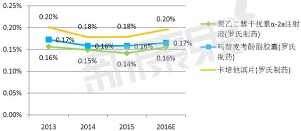 ![]() 罗氏制药成立于1896年,1926年进入中国。业务范围主要涉及药品、医疗诊断、维生素和精细化工、香精香料等四个领域。其中在药品治疗领域涉及中枢神经系统疾病、代谢紊乱、抗感染、抗病毒、抗肿瘤、移植、肝炎。其核心领域是抗肿瘤,此外在抗感染和免疫调节领域也拥有巨大市场。 Informa Pharma Intelligence发布的《2016全球100强制药企业排行榜》显示,罗氏制药2015年以387.91亿美元的销售额名列制药企业第三名。 中康CMH数据显示,罗氏在中国大陆以1.00%的市场份额位于第16名。2013-2015年,罗氏的市场份额在中国市场呈现下降态势,预计在2016年将有所回升。 罗氏2013-2016年市场份额变化 (中国大陆) ![]() 数据来源:中康CMH 重磅产品分析 FirstWordPharma发布的2015年全球品牌药品销售额top100达到2650亿美元(处方药),其中,罗氏有8个产品(利妥昔单抗、贝伐珠单抗、曲妥珠单抗、雷珠单抗、帕妥珠单抗、托珠单抗、奥马珠单抗、盐酸尼洛替尼片)进入该top100榜单,总额达280亿美元,占了10.57%的份额。 中康CMH数据显示,在国内的2015年top100中,罗氏只有三个产品入围,分别是卡培他滨片、吗替麦考酚酯胶囊、聚乙二醇干扰素α-2a注射液,分别位于第42、58、76名,从2013年到2015年,这三个产品的市场份额变化不大。 从CMH数据可知,罗氏进入全球top100品牌的产品都没有入围中国国内top100。一方面是由于部分产品没有在国内上市;另一方面则是因为昂贵的价格让相关产品使用受限;此外,仿制药的竞争也会挤压原研药的市场,以及能否进入国内的医保目录等原因都会影响其销售额。比如罗氏销售前三的产品利妥昔单抗、贝伐珠单抗、曲妥珠单抗,只有利妥昔单抗(进入黑龙江、江西、山东、青海、宁夏、广西、西藏、甘肃、贵州)和曲妥珠单抗(进入广西)进入了省医保目录。 数据来源:中康CMH ![]() 利妥昔单抗 利妥昔单抗(商品名:美罗华),1997年被FDA批准在美国上市,是全球第一个被批准用于临床治疗非霍奇金淋巴瘤(NHL)的单克隆抗体,2000年在国内获批上市。罗氏年度报显示2011-2015年每年销售额在65亿美元以上,在2015年高达73.27亿美元,2016年的前三季度已达55.22亿美元,预计该产品今年将续写去年的辉煌,成为罗氏公司的超级重磅产品。中康CMH数据显示,该药国内2015年销售额约16亿元。 目前国内企业只有正大天晴、华兰基因申报该新药,分别于今年9月、11月经批准进入临床。 贝伐珠单抗 贝伐珠单抗(商品名:安维汀)是重组的人源化单克隆抗体,可抑制血管内皮生长因子,用于治疗各类转移性癌症,2004年2月26日获得FDA批准,是美国第一个获得批准上市的抑制肿瘤血管生成的药物。于2015年,CFDA批准其用于晚期、转移性或复发性非鳞非小细胞肺癌的一线治疗。罗氏报表显示2011-2015年每年销售额在57亿美元以上,在2015年达到69.51亿美元,2016年的前三季度已达51.5亿美元,成为罗氏公司又一重磅抗癌产品。中康CMH数据显示,该药国内2015年销售额约4亿元。 当前国内的恒瑞和正大天晴注册申报该新药,均已被批准进入临床。 曲妥珠单抗 曲妥珠单抗(商品名:赫赛汀),是抗HER2的单克隆抗体,1998年在美获批上市,用于乳腺癌治疗,成为首个靶向HER2的人源化单克隆抗体药物,2010年,FDA批准其用于HER2阳性胃癌或胃食管交界癌;2002年被CFDA批准用于治疗乳腺癌。罗氏报表显示2011-2015年每年销售额在57亿美元以上,在2015年达到67.99亿美元,2016年的前三季度已达51.61亿美元,成为罗氏公司第三大畅销抗癌产品。中康CMH数据显示,该药国内2015年销售额约16亿元。 目前国内企业有正大天晴和华兰基因申报注册该新药,在今年均被批准进入临床。 雷珠单抗 雷珠单抗(商品名:Lucentis/诺适得)是一种血管生成抑制剂,雷珠单抗由罗氏(Roche)和诺华合作开发(罗氏拥有该药品在美国的商业化权利,诺华则拥有该药在美国以外国家和地区的独家权利), 2006年首先获得FDA批准用于治疗湿性年龄相关性黄斑变性,随后增加由视网膜静脉阻塞所导至的黄斑水肿的适应症。2010年,该药物获得FDA批准用于治疗糖尿病黄斑水肿。罗氏财报显示,该药2015年的销售额达到15.81亿美元,2016年的前三季度已达24.68亿美元(罗氏/诺华)。中康CMH数据显示,该药国内2015年销售额约2千万元。(诺华销售) 帕妥珠单抗 帕妥珠单抗(商品名:Perjeta)是第一个被称作“HER二聚化抑制剂”的单克隆抗体。通过结合HER2,阻滞了HER2与其它HER受体的杂二聚,从而减缓了肿瘤的生长。其在2012年6月8日通过了美国FDA的认证,用于治疗HER2阳性的转移性乳腺癌,2013年在欧洲和日本上市,目前还未在国内上市销售。罗氏年报显示,该药品上市第一年仅0.6亿美元,随后全球销售额快速增长,2015年达到了15.03亿美元,2016年的前三季度已达13.54亿美元。 托珠单抗 托珠单抗(商品名:雅美罗)是全球首个针对IL-6受体的人源化单克隆抗体,2005年在日本上市,2010年1月8日经FDA批准在美国上市。罗氏年报显示,该药品2015年达到了14.89亿美元,2016年的前三季度已达13.19亿美元。中康CMH数据显示,国内2015年销售额约2千万元。 奥马珠单抗 奥马珠单抗(商品名:索雷尔/Xolair)是首个治疗慢性特发性荨麻疹的生物制剂,也是继非镇静H1-抗组胺药之后首个获准用于治疗慢性特发性荨麻疹的药物。奥马珠单抗最早于2003年获准用于治疗中至重度哮喘,2014年3月21日批准慢性特发性荨麻疹新适应证。罗氏年报显示,该药品2015年销售额为13.28