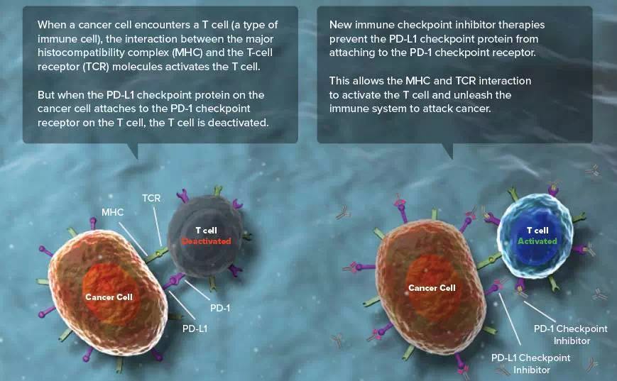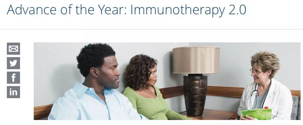 ![]() ASCO将免疫疗法2.0命名为今年的年度进展。本次入选是对癌症免疫治疗不断进展的肯定,这一创新治疗方案有效延长和改善了患者的生命,特别是其中许多患者几乎没有其他有效的治疗选择。 ![]() 免疫治疗的扩展使用和患者的优化选择 科学家已经花了一个多世纪的时间来学习如何利用免疫系统抗击癌症,尝试了许多策略来实现这一目标,但是其中一种方法特别有效:通过阻断免疫检查点的机理已经对一系列不同的癌症产生良好疗效。免疫检查点是作用于“免疫系统制动器”的专有蛋白质,确保免疫防御只有在需要时才启动。它们防止免疫系统变得过度活跃,这往往可能导至过度炎症或自身免疫性疾病。 ![]() ▲利用免疫系统攻击癌细胞(图片来源:ASCO) 被称为免疫检查点抑制剂的癌症治疗方案可以解开免疫系统的约束,让它攻击癌症。自从2011年,免疫检查点抑制剂缩小晚期黑素瘤的第一个显著疗效报告以来,这一领域的研究以惊人的速度发展。过去一年,FDA批准了免疫检查点抑制剂的五种新用途:肺癌、头颈癌、膀胱癌、肾癌和霍奇金淋巴瘤。然而,与之同时许多其他患有相同类型癌症的患者根本不能从免疫治疗中获益,或者只经历短暂的疗效。2016年,新的研究报告逐步发现了可识别最有可能从免疫治疗中受益的患者的方法,同时节省相关高成本和不良反应。 免疫检查点抑制剂的进展 ![]() 诊断为黑色素瘤的人数在过去三十年中急剧增加,并在全世界继续上涨。2016年,美国约有7.6万名成人被诊断为皮肤黑色素瘤。黑色素瘤是男性中第五大常见癌症,是女性中第七大常见癌症。虽然黑色素瘤只占所有皮肤癌病例的1%,但它导至了皮肤癌患者的绝大多数死亡人数。据估计,去年发生的黑色素瘤造成一万多名病人死亡。 大多数黑色素瘤患者有可能采用手术治愈。然而,在转移性黑素瘤患者中,只有17%的患者在诊断后5年内存活。在短短几年内,免疫治疗已经改变了这种疾病的前景。鉴于在接受免疫治疗的大部分患者中看到的持续反应,专家们开始推测这些病人的一部分可能达到最终治愈。 检查点抑制剂ipilimumab的获批标志着可以延长晚期黑素瘤患者生命的首个治疗选择,它阻断通过免疫检查点细胞毒性T细胞淋巴细胞相关蛋白-4(CTLA-4)来起作用。截至2014年年底,FDA批准了两种额外的检查点抑制剂用于晚期黑素瘤患者:pembrolizumab和nivolumab。 2016年,研究人员报告了长期随访的研究结果,655例患者参加了早期的pembrolizumab临床试验。中位生存期为23个月,24个月生存率为49%。肿瘤在三分之一的患者中有所缩小,治疗反应在44%患者中持续超过1年。Pembrolizumab通常耐受性良好,仅14%的患者发生严重的不良反应。最常见的不良反应包括疲劳、瘙痒和皮疹。这一研究结果与以前报道的nivolumab类似,其在晚期黑色素瘤患者中24个月的生存率为43%3。目前,领域内正在进行的研究旨在探索不同检查点抑制剂的组合,似乎多药联合比单独的一个检查点抑制剂更好,尽管它们产生更多的副作用。 PD-1抑制剂有效延长晚期肺癌患者寿命 肺癌是全世界最常见的癌症,据统计,2012年有180万新增病例。它也是癌症相关死亡的主要原因之一,每年所夺取的生命高达160万:这相当于每分钟三个人死去! ![]() 非小细胞肺癌(NSCLC)占所有肺癌的绝大多数(85%)。患有晚期NSCLC的患者具有严重不良预后。在2015年,程序性死亡-1(PD-1)检查点抑制剂pembrolizumab和nivolumab获得批准之前,接受标准化疗患者的预期平均寿命仅为10个月。 2016年,研究人员报告了一项大型试验的结果,比较了pembrolizumab与标准多西他赛化疗,针对先前经治、晚期、PD-L1阳性NSCLC患者。在本研究治疗的所有患者中,使用pembrolizumab患者的中位生存期为10.4个月,而使用多西紫杉醇仅为8.5个月。在具有更高水平的PD-L1(至少50%的PD-L1阳性细胞)的患者组中,pembrolizumab的中值存活时间更长(14.9对比8.2个月)。此外,与多西他赛(16%对比35%)相比,pembrolizumab的严重不良反应的发生率要低得多。免疫治疗不仅为NSCLC患者提供了更长寿的机会,而且对许多患者而言,其耐受性也比化疗更好。这些发现树立了pembrolizumab作为经治晚期NSCLC患者的新标准化治疗选择的依据。该研究还引发了一场关于PD-L1生物标记物检测的重要全国范围对话,是否最可能利用其来造福使用免疫检查点抑制剂的患者。 同时,大型临床试验的结果表明,pembrolizumab可能比化疗更有效,尤其作为具有高水平PD-L1(> 50%的癌细胞是PD-1阳性)的转移性NSCLC的患者的初始治疗方案。这些发现将改变转移性NSCLC病人的初始治疗:因为每个新诊断的患者将需要测试PD-L1。高PD-L1水平的患者可能接受免疫治疗而不是化疗。 另一种免疫检查点抑制剂atezolizumab在2016年被FDA批准用于以前经治的转移性NSCLC的患者。该批准基于两项大型临床试验,表明接受atezolizumab治疗的患者寿命更长(分别为13.8和12.6个月),相比较于接受标准多西他赛化疗的患者(分别为9.6和9.7个月)。使用atezolizumab治疗相关的最常见不良反应包括疲劳、食欲减退、气短、咳嗽和恶心。在获得肺癌适应症获批之前,atezolizumab是一先前获得批准用于治疗膀胱癌的PD-L1抑制剂。 2016年10月,FDA批准了pembrolizumab作为晚期PD-L1阳性NSCLC的患者的一线治疗方案,突破性疗法认定也曾被授予这一相同适应症用途。这些研究共同地意味着晚期肺癌的历史性标准治疗(即化疗)最终在一线或