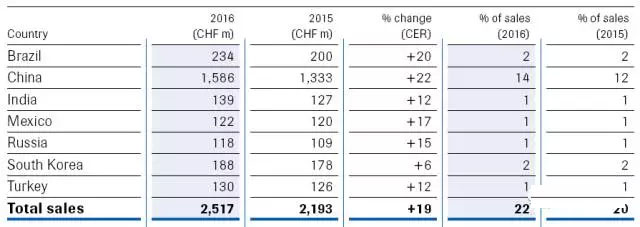 表3. 诊断业务各区域财务数据 (单位:百万瑞士法郎)