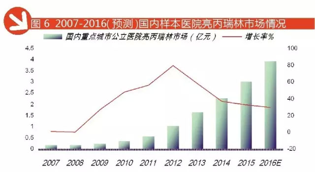亮丙瑞林: 三足鼎立格局企稳 日本武田是全球亮丙瑞林的主要生产厂家,商品名Lupron,占据了全球亮丙瑞林一半左右市场。据悉,武田与雅培合作创建塔普(TAP)制药公司所持有的专利已于2004年到期。两公司合作了33年的塔普公司也于2010年期满,塔普公司经营的亮丙瑞林由雅培公司经营,此外,安斯泰来、赛诺菲安万特、Orion、MediGene、OLT也是销售亮丙瑞林的厂商。近两年,在医疗消费水平上升的形势下,亮丙瑞林已逐渐被国内医生、患者接受。 目前,瑞林类多肽药物仍为国外及合资企业占据,较高的价格让国内患者无力承受,从而制约了市场发展。随着国家医疗保障体系的完善,这种情形可望得到改观。LHRH类似物不但用于乳腺癌的治疗,其重要适应证还有前列腺癌及子宫内膜异位症。从整体市场来看,该类药销售额逐年递增。随着乳腺癌发病率的增长以及人们乳腺癌预防知识水平的提高,乳腺癌内分泌治疗药物市场将不断扩大。抗雌激素类及芳香酶抑制剂在乳腺癌内分泌治疗中占有统治地位,尤其是芳香酶抑制剂近几年增长较快,已成为该领域的热点。 亮丙瑞林是国内重点城市公立医院瑞林类处方药中居第一位的药物,也是增长率最高的品种。这一类多肽类药物一般剂量很小,但需要长期给药,这就给创新性剂型提供了机会。武田药品工业公司的亮丙瑞林缓释粉针剂是上世纪末在我国进入临床的药物,商品名为抑那通。随后原研药厂开发了缓释微球技术,该技术是将药物包封于微球载体中,通过皮下或肌肉给药,使药物缓慢释放,改变其体内转运的过程,延长作用时间。2009年,北京博恩特药业、上海丽珠制药的亮丙瑞林注射用缓释微球获批上市。 据HDM系统数据,2016年1-3季度,国内重点城市公立医院亮丙瑞林用药金额达2.96亿元,预测2016年全年城市公立医院亮丙瑞林用药金额达3.94亿元,同比上一年增长了29.74%。TOP 3厂商是:天津武田占据53.37%、北京博恩特药业占据23.68%、上海丽珠占据22.95%。基本上形成了国内亮丙瑞林用药市场三足鼎立的格局。