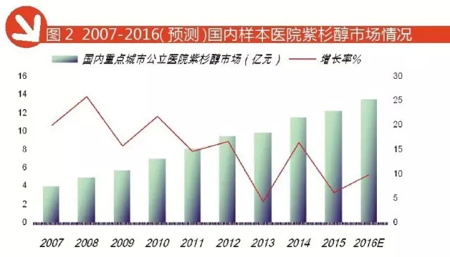 据米内网“中国城市公立医院化学药终端监测分析系统”(HDM系统)数据,2015年城市公立医院、县级公立医院、城市社区、乡镇卫生院、实体药店和网店三大终端6大市场抗肿瘤药达950亿元规模,同比上一年增长率为13.53%。保守预测2016年中国三大终端6大市场抗肿瘤市场将达到1050亿元,同比上一年增长了10.52%。 另据HDM系统数据,2016年1-3季度国内重点城市公立医院抗肿瘤和免疫调节剂药物销售金额达176.84亿元,预测2016年全年将达到236亿元,同比上一年增长了9.07%,抗肿瘤药占据近60%,地位举足轻重。其中,乳腺抗癌药TOP 5是紫杉醇、多西他赛、卡培他滨、曲妥珠单抗和亮丙瑞林,占56.37%。 紫杉醇: TOP 3厂家占85% 紫杉醇是一种广谱抗肿瘤药物,其独特的微管稳定作用被广泛用于多种常见恶性肿瘤的化疗。药物是一柄“双刃剑”,在其复合溶媒作用下可导至过敏反应、中毒性肾损害、神经毒性和对心血管毒性不良影响,从而给患者带来新的伤害。为了更好地发挥紫杉醇的抗癌作用,人们对其新剂型进行了深入探索,紫杉醇脂质体药物问世后,在治疗上取得了突破性进展。 紫杉醇脂质体相对传统紫杉醇制剂有安全性高、耐受性好和肿瘤组织、淋巴组织的被动靶向性特点,紫杉醇脂质体比游离紫杉醇的分布高2~23倍。被动靶向性是脂质体静脉给药的基本特征。这些特性使紫杉醇脂质体天生就有抗淋巴结转移的优势,同时也降低了其对心脏、肾脏的毒性作用,但更重要的是紫杉醇脂质体还有肿瘤靶向作用。 与传统紫杉醇制剂相比,紫杉醇脂质体分布快、消除慢,可在体内长期保持有效的血药浓度。尤其是紫杉醇脂质体在肿瘤组织和淋巴结内的浓度更高,具有更强的抗肿瘤疗效和抗淋巴转移作用。 据HDM系统数据,2016年1-3季度国内重点城市公立医院紫杉醇销售金额达10.15亿元,预测2016年全年紫杉醇用药金额为13.54亿元,同比上一年增长了9.96%。TOP 3厂商是:绿叶思科占据60.73%、费森尤斯卡比占据14.17%、布迈施贵宝/Corden占据10.49%。