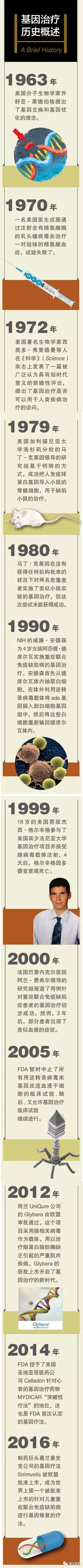 随着基因体外扩增,尤其是 PCR(聚合酶链式反应)技术的出现和完善,基因克隆技术日臻成熟,DNA 重组技术和病毒载体也得到进一步发展,分子生物学和细胞生物学开始进入黄金时期。 截至 1990 年,来自多个研究组的一系列工作令人信服地验证了病毒介导的基因纠正和替代的可行性与有效性。对于乐观的研究者而言,基因治疗似乎真的近在咫尺、触手可及了。同年,基因治疗史上最早被正式批准的两项人体试验在美国开始了。其中一项就是广为流传的,被认定为历史上首例基因疗法的临床试验,由 NIH的威廉 • 弗伦奇 • 安德森(William French Anderson)医生领衔的针对重 症 联 合 免 疫 缺 陷 病(SCID) 的 基因治疗。安德森和合作者们首先从 4岁女孩阿莎提 • 德席尔瓦(Ashanti DeSilva)体内抽取白细胞,然后在体外利用逆转录病毒载体将能够正确编码腺苷脱氨酶的 ada 基因插入到德席尔瓦的白细胞基因组中,最后将这些基因工程改造后的白细胞重新输回德席尔瓦体内。之后的检测证明,德席尔瓦体内的白细胞确实可以正确地合成腺苷脱氨酶。不过,德席尔瓦至今仍需要经常性地接受类似的手术,以确保基因疗法的持续性,而且还必须定期注射长效腺苷脱氨酶蛋白。因此,这一基因治疗案例在学界仍然备受争议,德席尔瓦的康复是否代表着基因疗法的成功还难以界定。尽管如此,这一案例在基因治疗发展史上无疑是一个极其重要的里程碑。 另一项试验同样选择了逆转录病毒作为载体,由安德森同史蒂文 • 罗森堡(Steven Rosenberg)博士合作进行,利用肿瘤坏死因子(TNF)基因修饰的肿瘤侵入性淋巴细胞(TIL)对黑色素瘤进行的免疫治疗。 90 年代中后期,伴随着人类基因组研究的迅猛发展,基因治疗领域呈现爆发性扩张。NIH 新批准的基因治疗临床项目中,1990 年仅有 2 例,1993 年、1994 年分别达到 37、38 例,1995 年到 67 例,而 1999 年更是激增到 116 例。截至 2000 年,全世界大约有 4 000 名患者参与了 500 多个基因治疗的临床试验项目,其中 77% 来自美国,69% 是针对癌症治疗。但 是,“ 希 望 肥 皂 泡” 随 着1999 年初秋的到来而破灭了:1999年 9 月 13 日,18 岁的美国男孩杰西 •格尔辛格(Jesse Gelsinger)参与了美国宾夕法尼亚大学基因治疗项目并接受腺病毒载体注射,4 天后,格尔辛格因多器官衰竭死亡。依据后来的调查,格尔辛格很可能死于免疫系统对腺病毒载体的过度反应。尽管格尔辛格一家人表现出了令人敬重的宽容和对科学的奉献精神,但格尔辛格的死亡无疑代表着基因治疗进入最黑暗和最艰难的一段时期。客 观 地、 回 顾性地来审视格尔辛格的死亡,至少有一点值 得 我 们 思 考 与 借鉴:尽管有了 80 年代的教训与规则,这个 全 新 的、 高 度 复杂、个体化和涉及患者生命健康的技术领域,对于诸多关键问题缺乏深入、系统的探索与足够的认识。在这种情况下,部分研究者在学术或者产业利益影响下的盲目乐观和激进可能在某种意义上阻碍了基因治疗领域和产业的发展。 格尔辛格的死亡让基因治疗不论从社会舆论、国家政府资助、民间资本还是学术界角度都进入寒冬。然而,“塞翁失马焉知非福”——如同 20年前克莱因临床试验的失败,格尔辛格事件再次将基因治疗从亢奋的悬崖拉回,摒弃商业诱惑、幻想与狂热,重归学术、希望与理性。 之后几年,零星的有成功可能的基因治疗个案报道开始出现。这些令人振奋的案例无一例外得益于整个领域的快速进展:或者是采用了更优化的载体,或者是对于疾病的机理有了更深入系统的了解,从而能够制定更好的基因治疗策略和方法。这些初步的成功也反映了该领域的韧性、自身纠错能力和逐步的成熟。2000 年,法国巴黎内克尔医院阿兰 • 费希尔(Alain Fisher)领导的研究组报道了两例针对重症联合免疫缺陷症患者的基因治疗初步成功。然而,3 年之后,尽管在 10 例患者中 8 例有很好的治疗效果,但是两个最年轻的患者出现了类似血癌的症状。因此,2003年 1 月,FDA 暂时中止了所有用逆转录病毒来基因改造血液干细胞的临床试验。2003 年 4 月,在基因治疗方面经验日丰的 FDA 经过严格的审核权衡后认为:尽管存在潜在的风险,但是对于罹患如此重症的患者而言,基因治疗利远大于弊,临床试验被允许继续。 正是在这种螺旋式的前进、遇挫甚至是倒退和再前进的过程中,学术界、产业界、FDA 和大众对基因治疗的了解越来越多,因而也能够以更科学的态度,更严格和审慎地对待基因治疗这一“洪水猛兽”,不骄不躁地拥抱成功,理性地直面和包容失败。基因治疗开始缓慢地走出困境,不断有令人鼓舞的成功案例出现,2006 年有了第一例成功的癌症基因治疗,2007 年开始眼病基因治疗尝试…… 21 世纪的第二个 10 年 基 因 治 疗 的 春 天 在 21 世 纪 的第 二 个 10 年 到 来。2012 年, 荷 兰UniQure 公司的 Glybera 由欧盟审批通过,不同于逆转录病毒载体和格尔辛格试验的腺病毒载体,这个项目采用腺相关病毒(AAV)作为载体,用以治疗脂蛋白脂肪酶缺乏引起的严重肌肉疾病。Glybera 的获批上市开启了基因治疗的新时代。 2014 年,FDA 依 据 临 床 I 期的结果授予了美国圣地亚哥医药公司 Celladon 针 对 心 衰 的 基 因 治 疗药 物 MYDICAR“ 突 破 性 疗 法” 的 地位, 这 也 是 FDA 首 次 认 定 的 基 因疗 法。2015 年 和 2016 年,Spark Therapeutics、Bluebird Bio、AVeXis 公 司 在 研 产 品 SPK-RPE65、LentiG