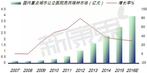日本武田是全球亮丙瑞林的主要生产厂家,商品名Lupron,占据了全球亮丙瑞的一半左右的市场。据悉,武田与雅培合作创建塔普(TAP)制药公司所持有的专利已于2004年到期。两公司合作了33年的塔普公司也于2010年期满,塔普公司经营的亮丙瑞林将由雅培公司经营,此外,安斯泰来、赛诺菲安万特、Orion、MediGene、OLT也是销售亮丙瑞林的厂商。近两年,在医疗消费水平上升形势下,国内样本医院亮丙瑞林用药已逐渐被医生、患者接受。 目前,瑞林类多肽药物仍为国外及合资企业所占据,较高的价格让患者无力承受,从而制约了市场发展。随着国家医疗保障体系的完善,可望得到改观。LHRH类似物不但用于乳腺癌的治疗,其重要的适应症还有前列腺癌及子宫内膜异位症。从整体市场来看,该类药的销售额逐年递增。随着乳腺癌发病率的增长以及人们乳腺癌预防知识水平的提高,乳腺癌的内分泌治疗药物市场将不断扩大。抗雌激素类及芳香酶抑制剂在乳腺癌内分泌治疗中占有统治地位,尤其是芳香酶抑制剂在近几年增长较快,已成为该领域的热点。 亮丙瑞林是重点城市公立医院“瑞林类”处方药物中居第一位的药物,也是增长率最高的品种。这一类多肽类药物一般剂量很小,但需要长期给药,这就给创新性剂型提供了机会。武田药品工业公司的亮丙瑞林缓释粉针剂是上世纪末在我国进入临床的药物,商品名为抑那通。随后原研药厂开发了缓释微球技术,缓释微球技术是将药物包封于微球载体中,通过皮下或肌肉给药,使药物缓慢释放,改变其体内转运的过程,延长作用时间。2009年SFDA批准了北京博恩特药业、上海丽珠制药的亮丙瑞林注射用缓释微球上市场。 最新数据显示,2016年1-3季度重点城市公立医院亮丙瑞林用药销售金额达2.96亿元,预示2016年全年城市公立医院亮丙瑞林用药销售金额达3.94亿元的市场规模,同比上一年增长率为29.74%,TOP3的厂商是天津武田占据53.37%、北京博恩特药业占据23.68%、上海丽珠占据22.95%。基本上形成了国内亮丙瑞林用药市场三足鼎立的格局。