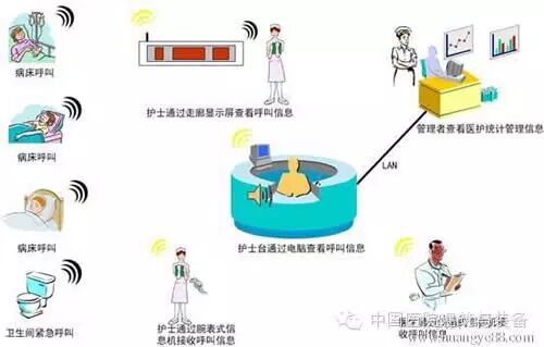 病区各护理单元护士站与患者床头间双向对讲呼叫;各护理单元联网服务;手术区护士站与各手术室双向对讲呼叫;各导管室与护士站间双向对讲呼叫;ICU、CCU护士站与各病床之间双向对讲呼叫;妇产科护士站与各分娩室双向对讲呼叫;集中输液室与护士站间配置呼叫系统。